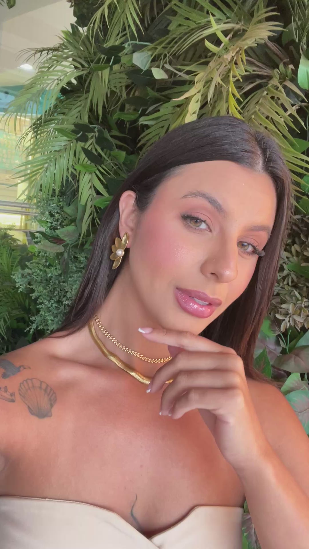 O Brinco Flor Dourada com Pérola Central é uma peça atemporal que combina o brilho do banho em ouro 18K com o toque sofisticado da pérola. Seu design em formato de pétalas texturizadas traz leveza e charme, enquanto o brilho suave da pérola central adiciona delicadeza e feminilidade à composição.